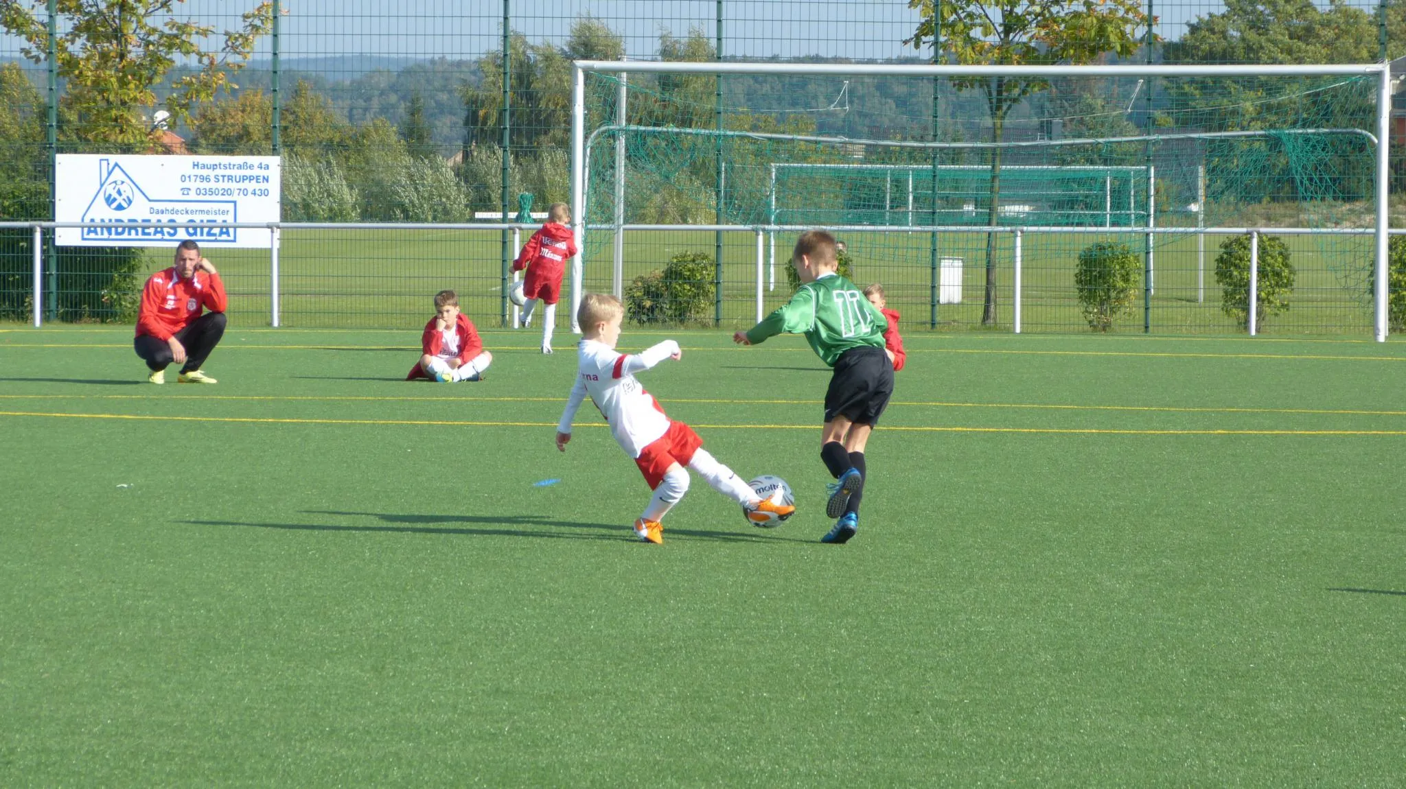 Am heutigen 5. Spieltag hatten wir die Mannschaft vom SV Chemie Dohna zu Gast. Unsre Jungs hochmotiviert und konzentriert. Es durfte nicht wieder so enden wie am vergangenen Wochenende in Kesselsdorf. Die Jungs fanden schnell ins Spiel und so klingelte es bereits in der vierten Minute durch einen Weitschuss von Maurice im gegnerischen Tor. Nach einen schnellen Anstoß legte Noah in der fünften Minute mit einem weiteren Tor nach. Dann wurde es etwas ruhiger auf dem Spielfeld aber nicht am Spielfeldrand wo unsere Trainer und auch die Eltern die Jungs lautstark unterstützten und motivierten. Nach einem ET von Dohna ,konnten diese aber auch einen ihrer vielen guten Spielzüge für ein eigenes Tor nutzen. Mit einem Spielstand von 3:1 ging es dann in die Halbzeitpause. Auch in der zweiten Halbzeit haben sich beide Mannschaften nichts geschenkt und kämpften um den Sieg. In relativ kurzer Zeit erzielte dann Jonas Tor vier, fünf und sechs.
