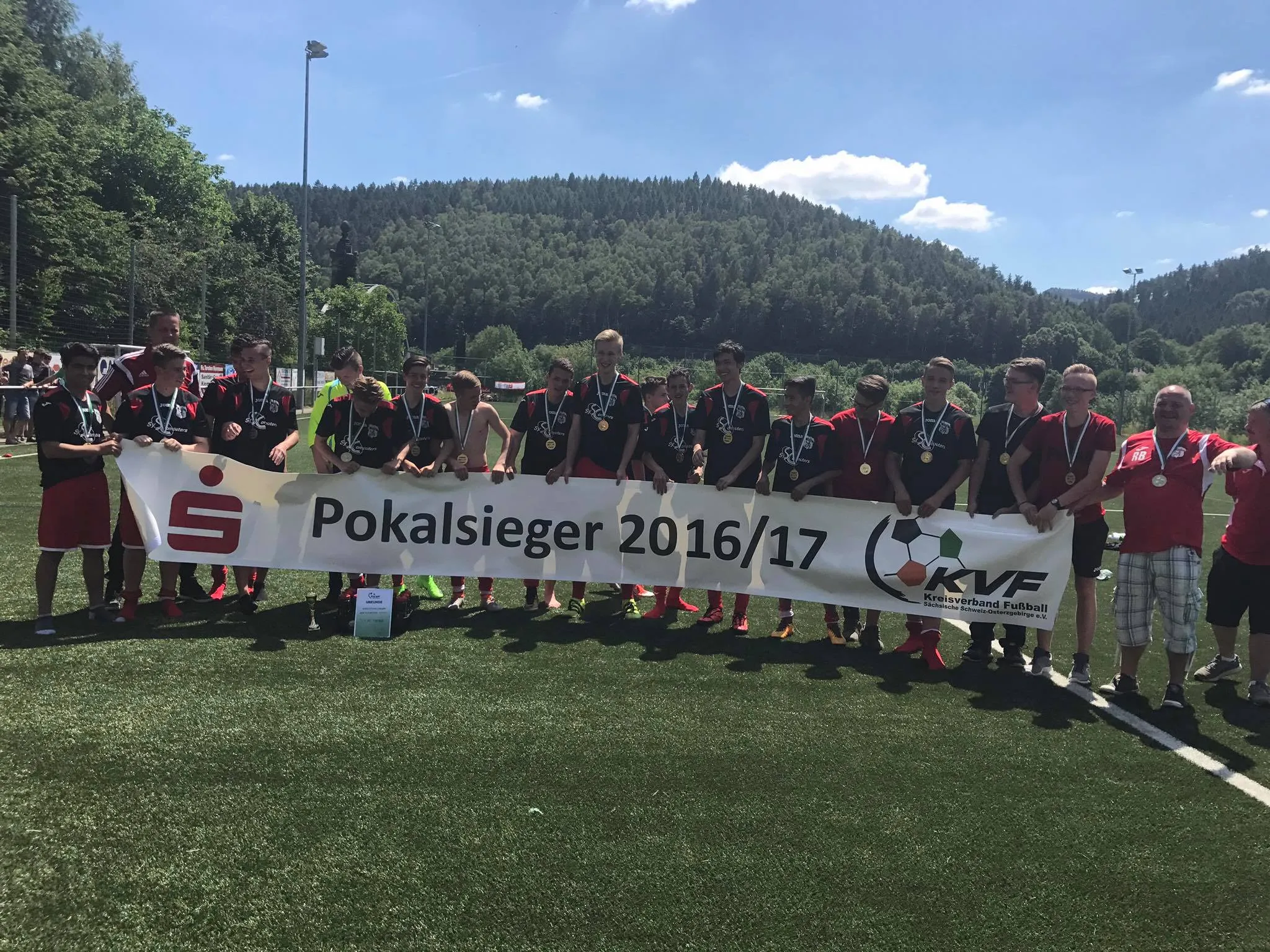 Die Spieler aus Rabenau drängten in der 2. Halbzeit energischer gegen das Pirnaer Tor, aber die Abwehrreihe der Pirnaer um ihren Tormann Stanley stand sicher und ließ nur wenige zwingende Torchancen zu. Einen Konter der Rabenauer Mannschaft in der 52. Minute schloss dann aber deren Stürner mit einem unhaltbaren Flachschuss zum Anschlusstreffer ab. In der nun folgenden Druckphase der Rabenauer eroberte sich Justin an der gegnerischen Strafraumgrenze den Ball und erzielte mit einem sehenswerten Volleyschuss das wichtige 3:1. Postwendend gelang den Rabenauern der Anschlusstreffer und so wogte das Spiel hin und her, bis der sehr gut agierende Schiedsrichter das Spiel in der 85. Minute abpfiff und sich die Pirnaer Spieler als Sieger des Pokalfinales in den Armen lagen.