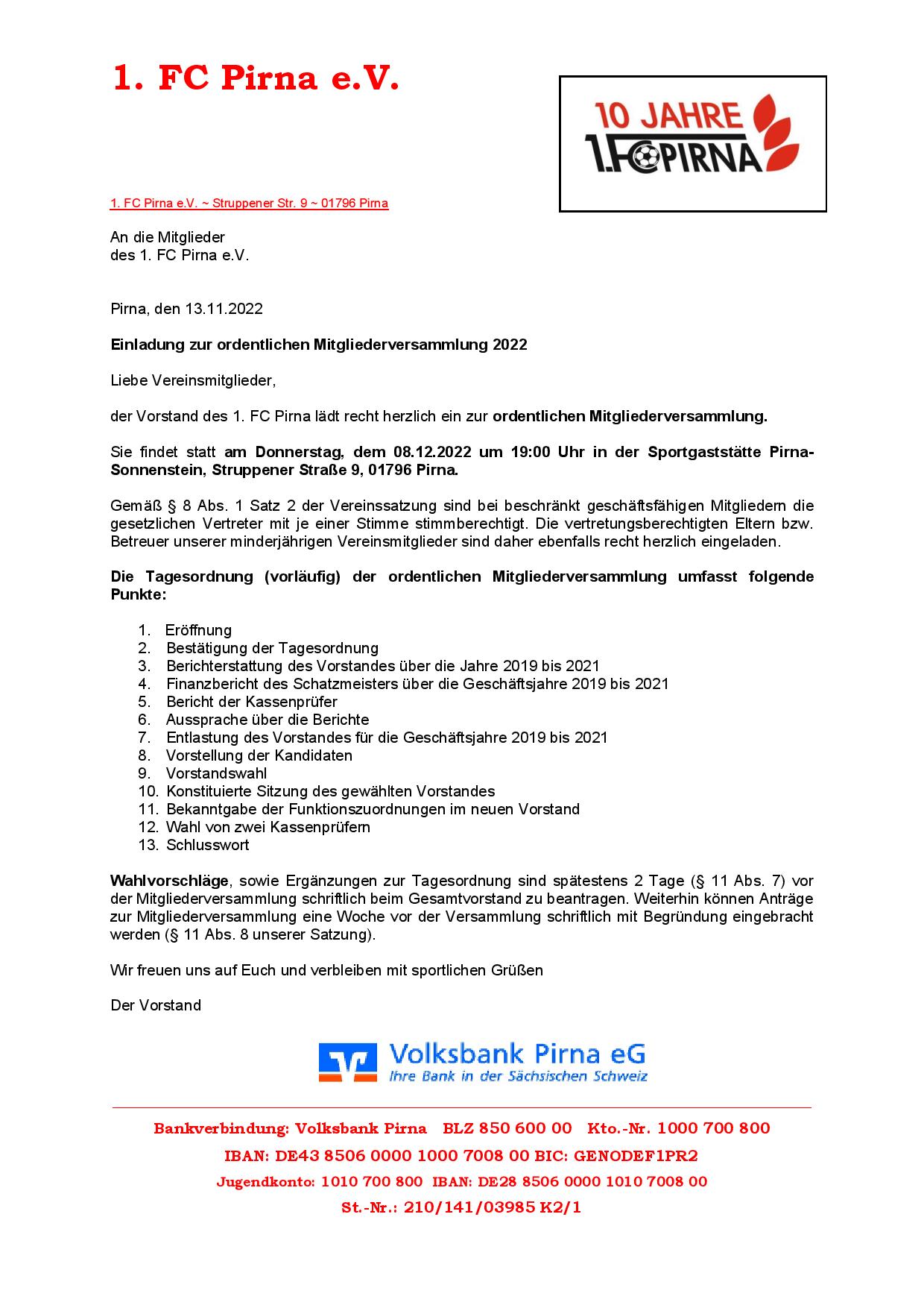ordentliche Mitgliederversammlung am 08.12.2022